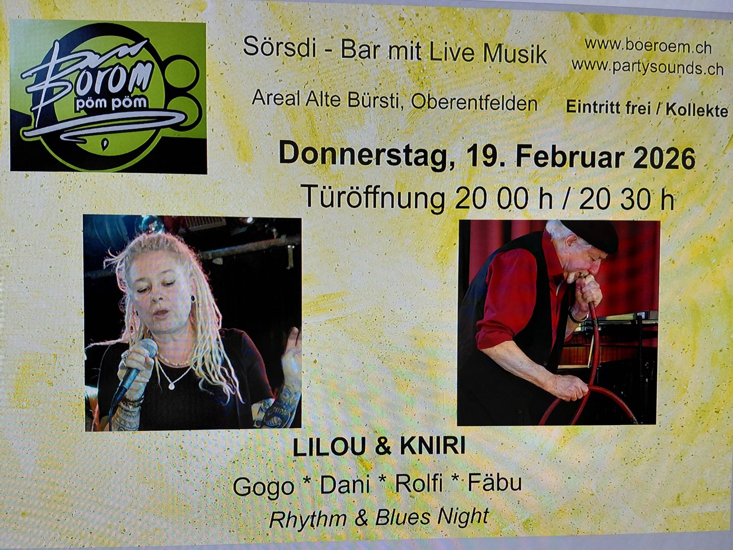 19.02.2026,   Rhythm & Blues Night mit Gogo ,  Böröm,  Oberentfelden  20:30